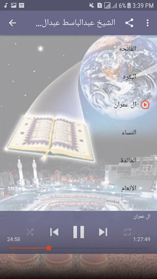 بعدها يمكنك الاستمتاع بتجربة فريدة مع الشيخ عبد الباسط عبد الصمد في تلاوة القرآن mp3.
