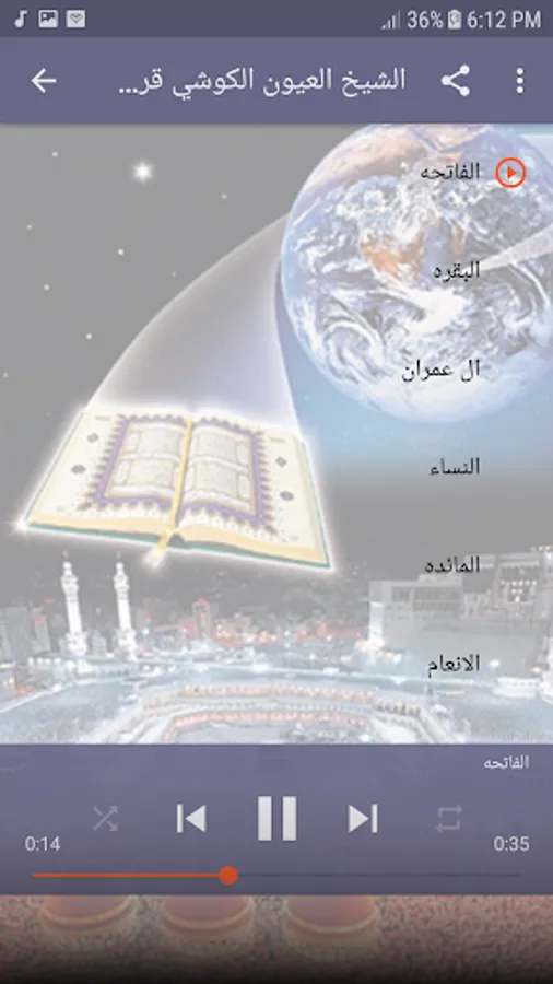 الشيخ العيون الكوشي في تلاوة للقرآن الكريم كاملا بجودة عالية وبرواية ورش عن نافع في تطبيق مميز يشتمل على مجموعة كبيرة من الوظائف الهامة كخاصية تحميل السور والاستماع الى التطبيق بدون انترنت علاوة على واجهته الانيقة والسهلة الاستعمال كما يتوفر على خصائص مشاركة التطبيق مع الغير واستعمال ملفاته كرنة هاتف أو منبه واستمرارية الاستماع لتلاوة السور في خلفية التطبيق رغم تصفح مواقع اخرى. قرأن كامل العيون الكوشي بدون نت