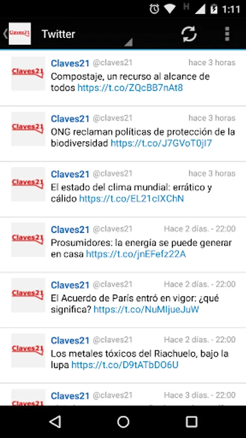 - I followed from the app Claves21 all activity and news we publish on social networks Twitter and Facebook. They are the best place for instant access to news about sustainability and exclusive content.