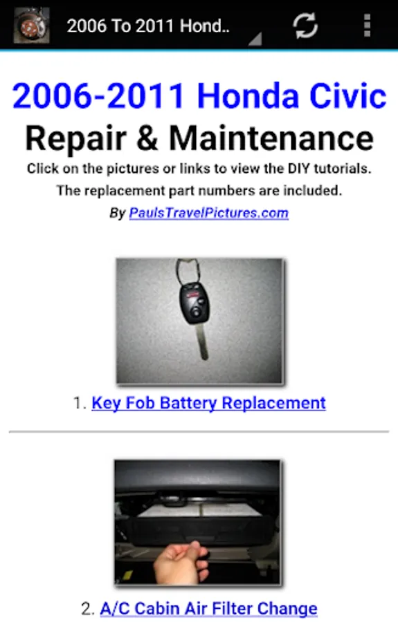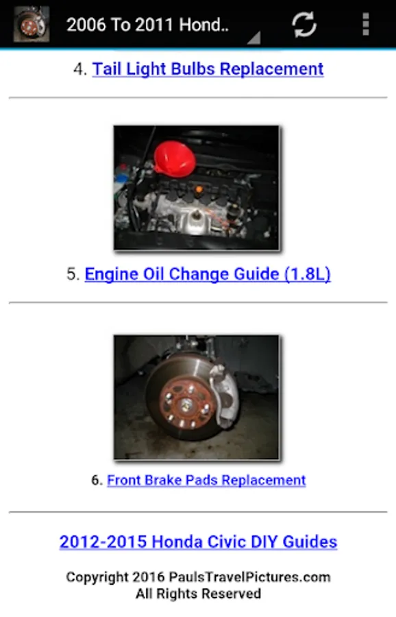 A collection of do-it-yourself repair guides and how to maintenance tutorials to assist owners of the 6th generation (2006, 2007, 2008, 2009, 2010 and 2011) Honda Civic sedan or coupe.