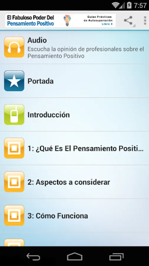 This book is number 4 of the series Handbooks become self-improvement app, with related videos and audios, as well as other documents, to motivate towards personal growth and development of their creativity.
