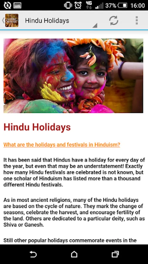 This app provides a large scale of information about Hinduism; The religion of the majority of people in India and Nepal.