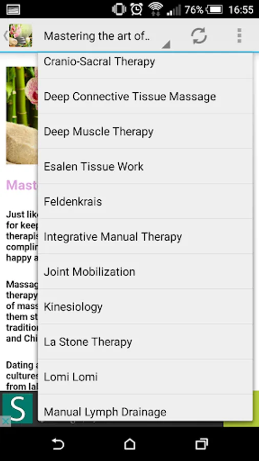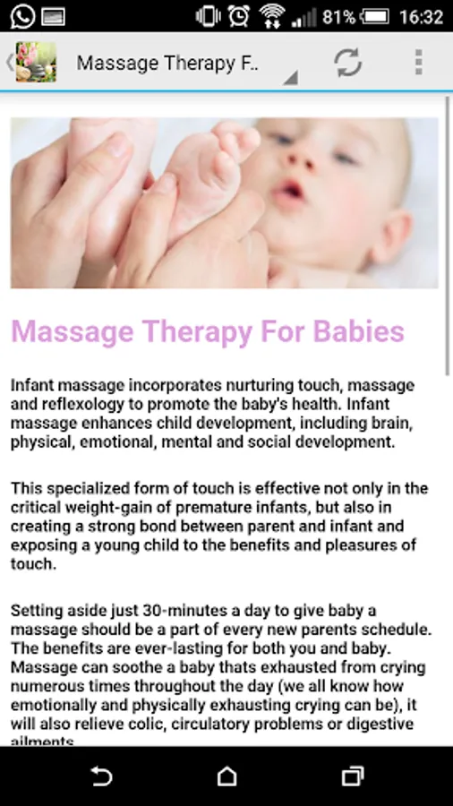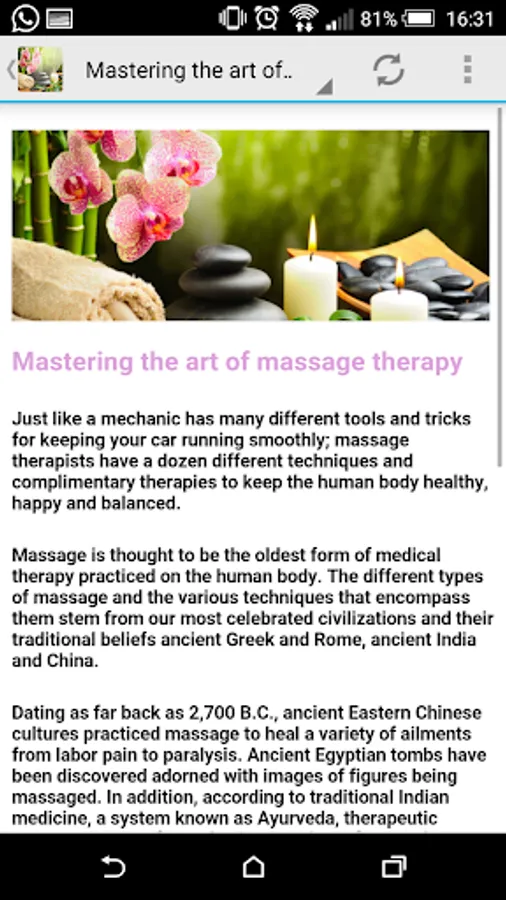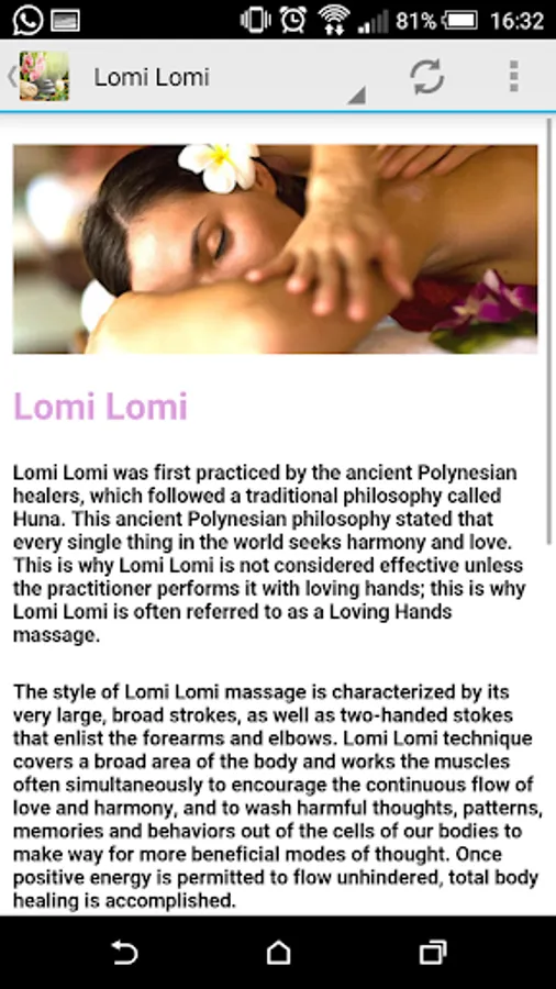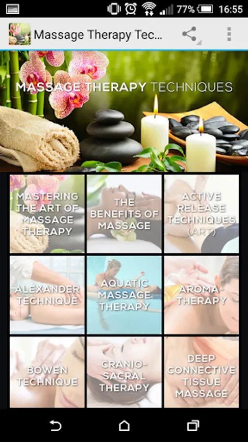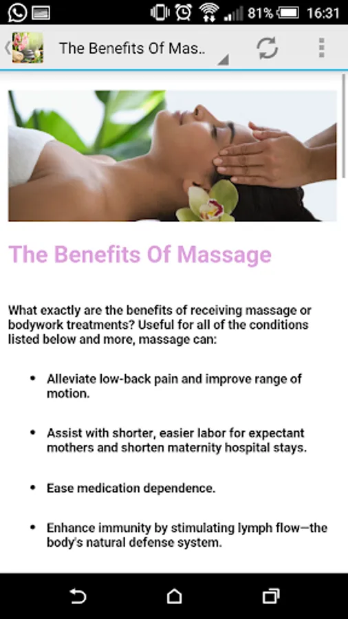 This app provides a large list of 36 different massages and their benefits.
