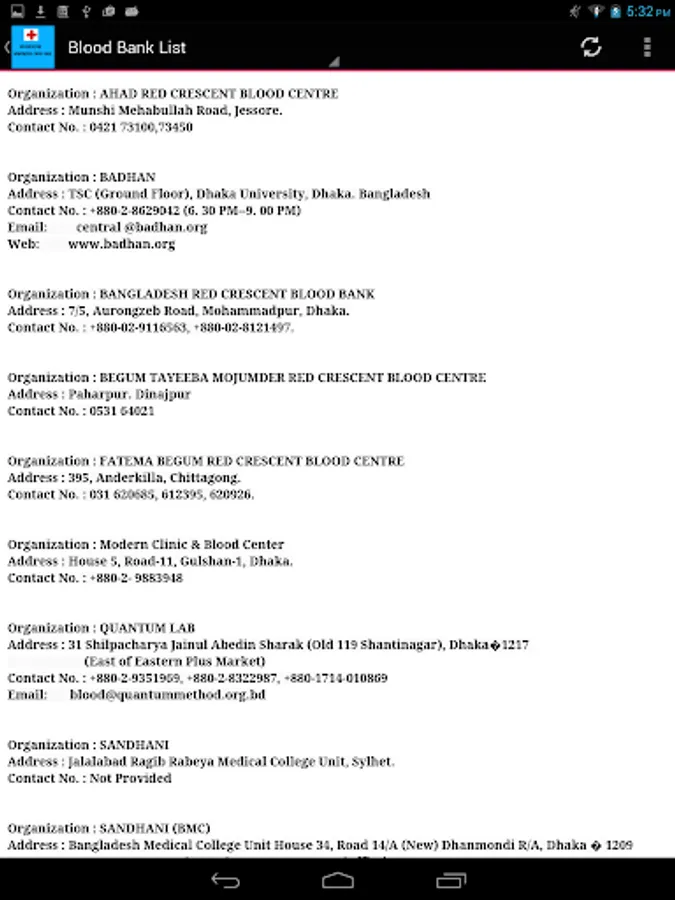 This Android app is a novel app which provides the contact information of all the renowned doctors in Dhaka city with their chamber's phone number, visiting time and address. You will also get the list of all the blood banks and their phone number in this Android app.