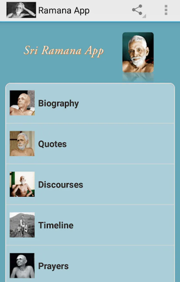 Sri Ramana Maharshi Prayers App - Contains Biography, Quotes ,Wallpapers,Discourses,Ramana Maharshi's Timeline and Daily Prayers.