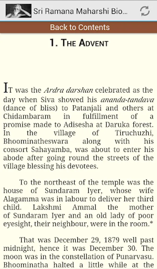 From Childhood to the Maha Nirvana of Sri Ramana Maharshi's (Thiruvannamalai) life is included in the app.
