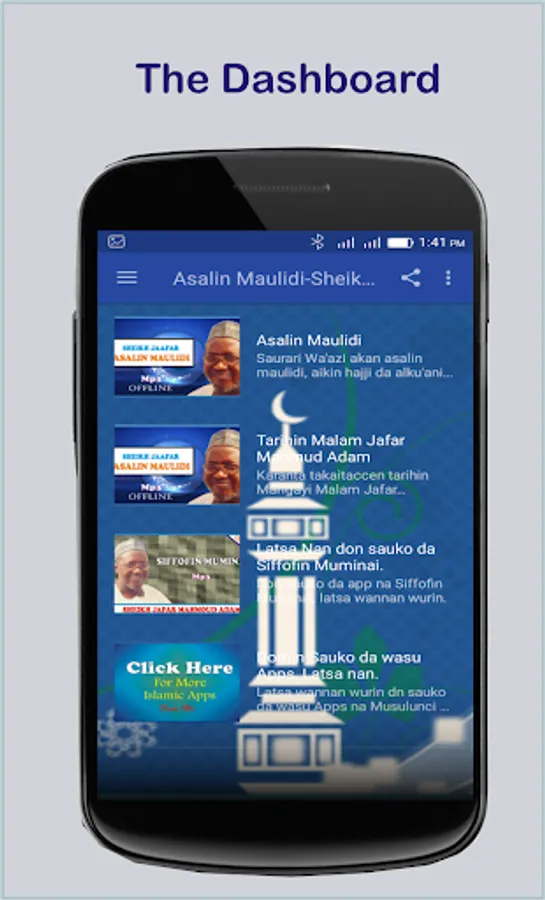 Wannan application mai suna Asalin Maulidi-Sheikh Jafar na kunshe da wa'azin Marigayi Sheikh Jafar Mahmoud Adam wanda ke magana akan Asalin Maulidi, Aikin Hajji da kuma Alkurani Littafin shiriya da ma wasu.