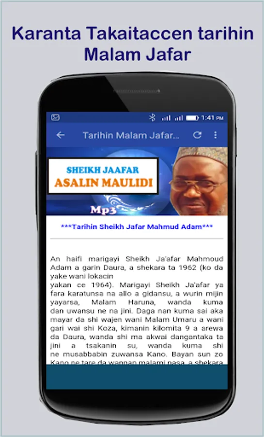 Haka zalika wannan app na dauke da takaitaccen tarihin marigayi Malam Jafar, Allah yayi masa rahama.
