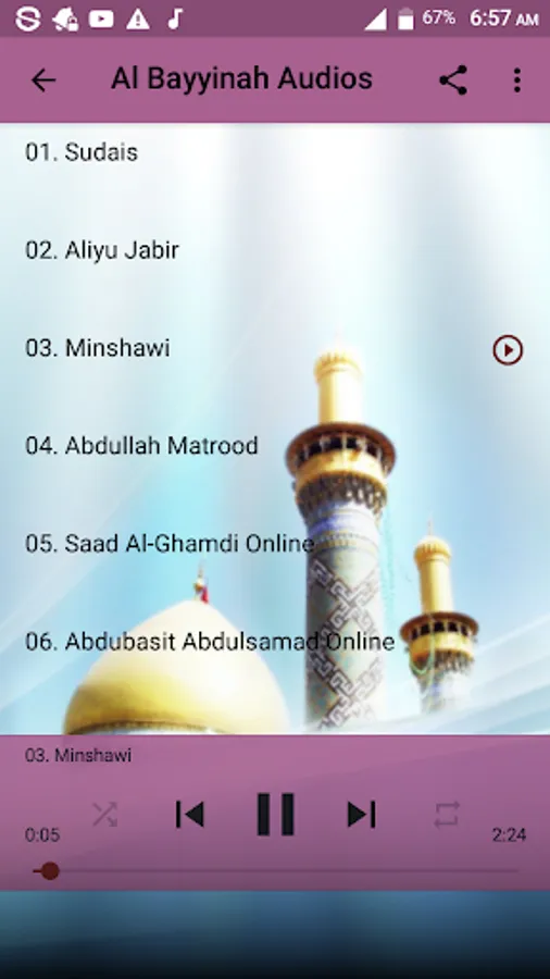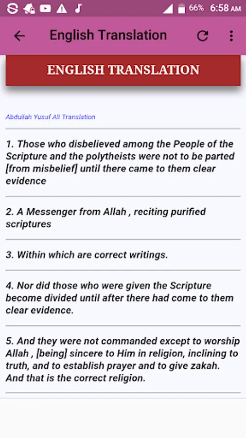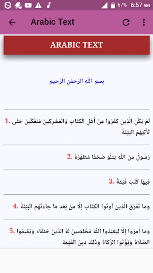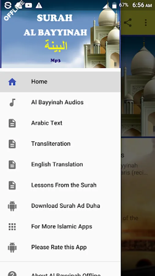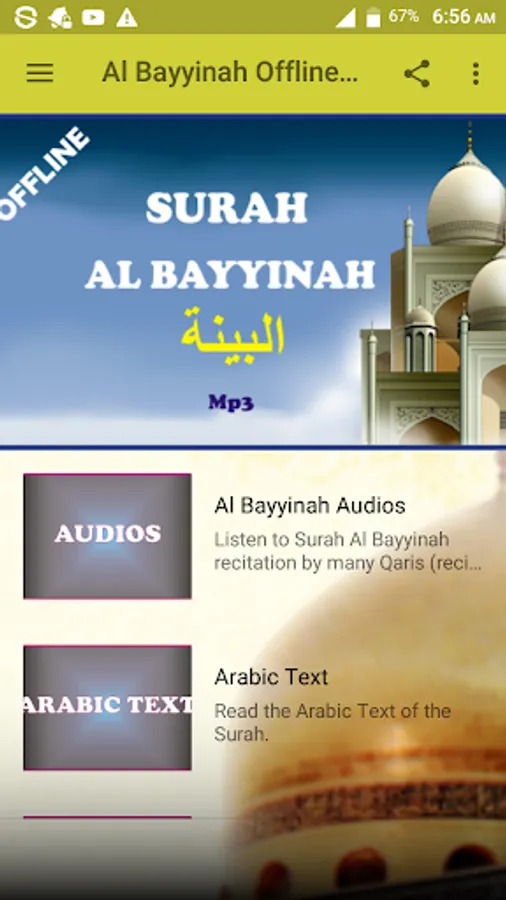 Listen to Surah Al Bayyinah Offline free as recited by Seven Qaris namely:
