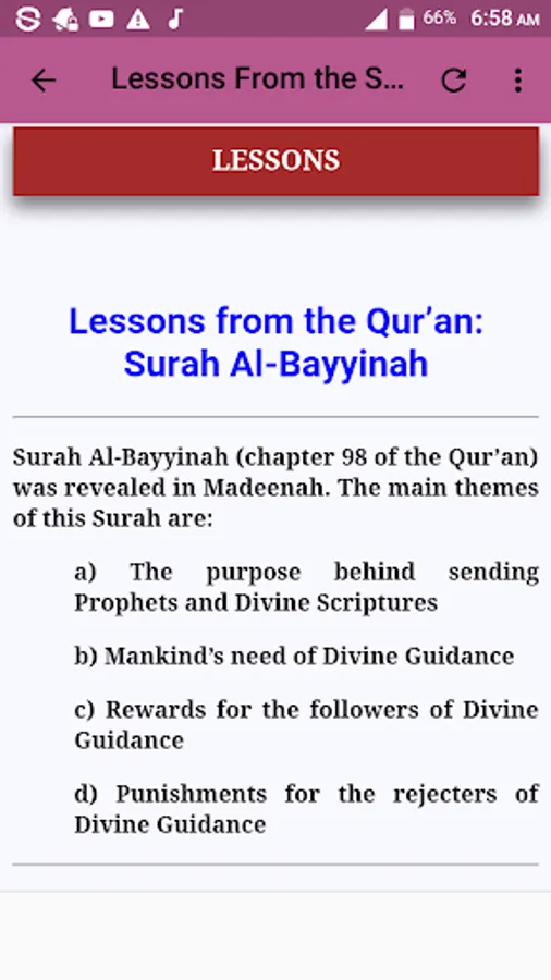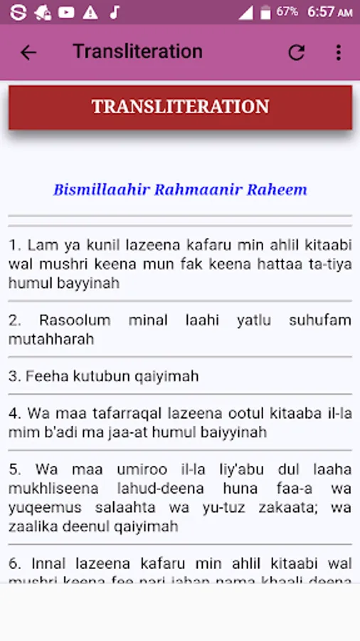 This application contains arabic text of the surah, Complete transliteration of the surah for easy understanding, English translation as well as lessons and benefits from the surah.