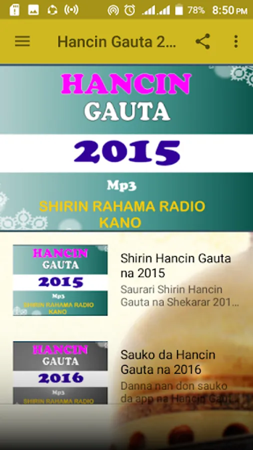 Wannan Manhaja ta kawo muku Shirin Hancin Gauta na shekarar 2015 wanda Gidan Radio na Rahama Radio FM Kano Nigeria ke shiryawa tare da Dr. Abdulkadir Ismail. Muna da manhajojin wannan shiri mai albarka na shekarun 2014, 2016, 2017 da ma sauran su.