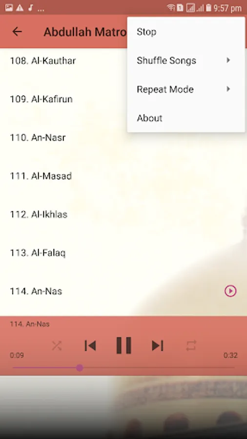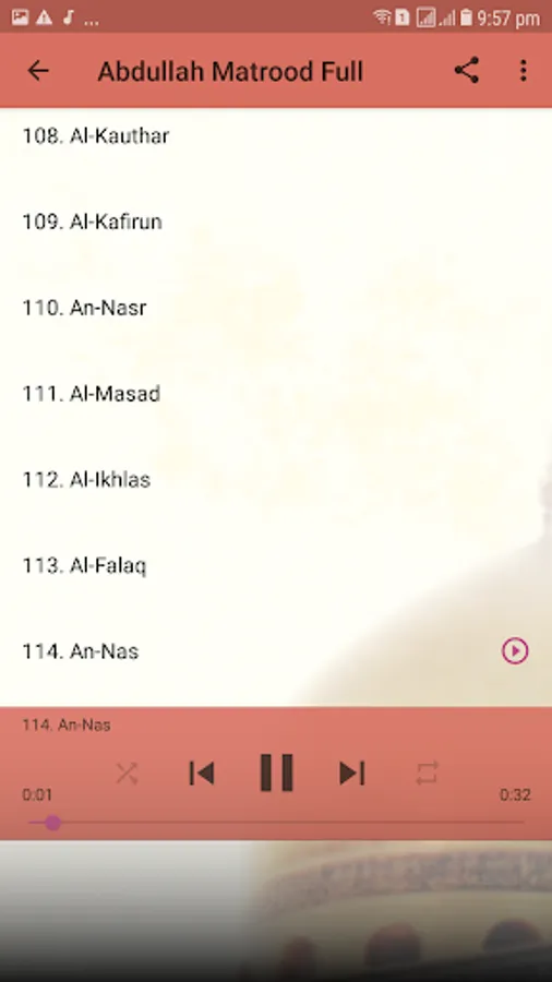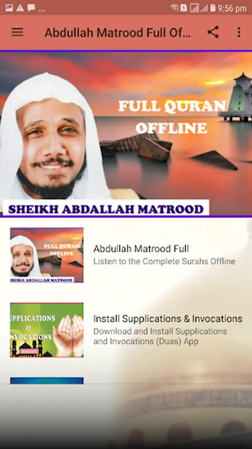 This application brought you Holy Quran mp3 offline recitation by Sheikh Abdullah Matrood. With this application you can listen to any Surah offline for free without the need of internet connection. Download, Install and enjoy the app.