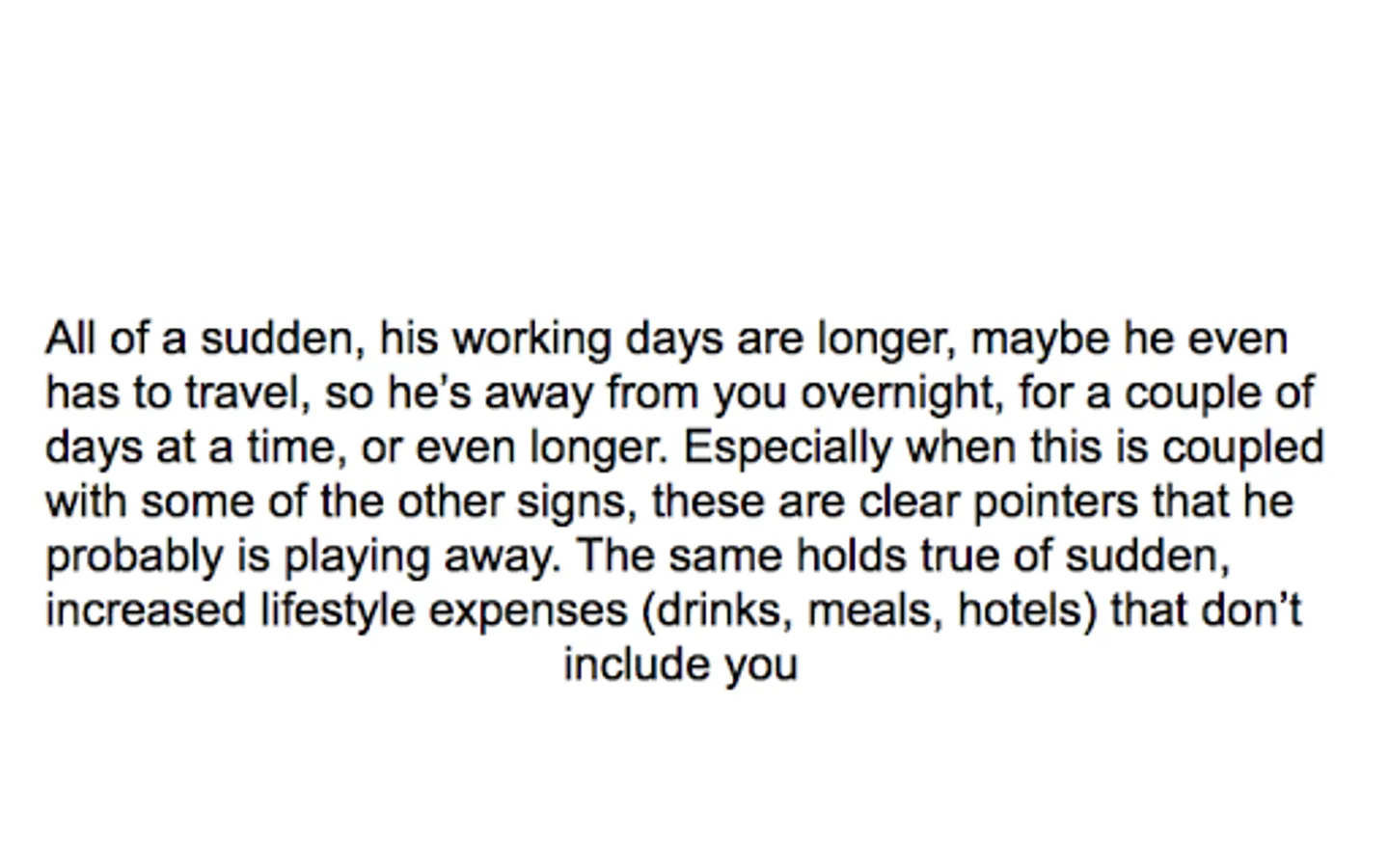 Ever wonder if your partner having an affair? Do you suspects your partner is a cheater? Try using 55 tips and information inside this app to potentially catch a cheater! Example of the tips are :