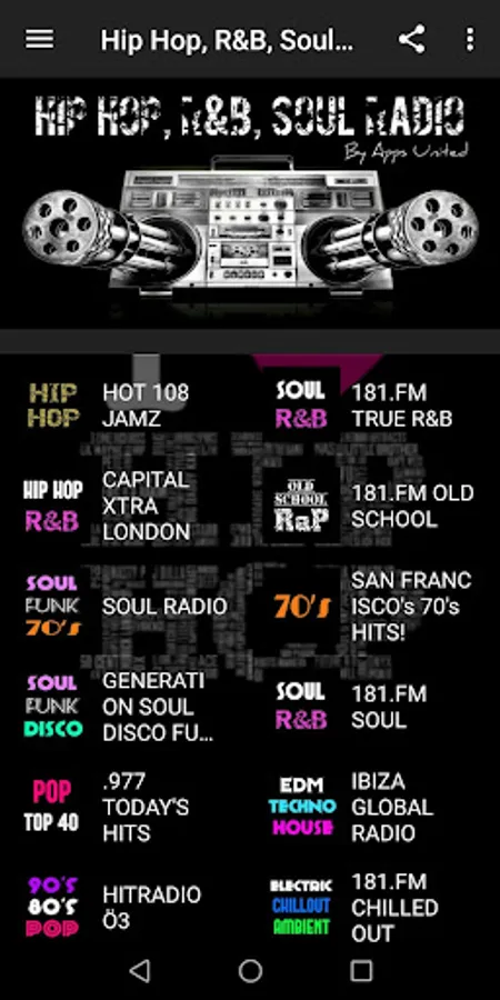 Hip Hop music, will let you listen the best Hip Hop music, rap music, r&b music, soul music, funk music, 70's music, 80's music, reggae music and more. Listen and choose your favourite radios with the best artists, all stations are live streams 24 hours.