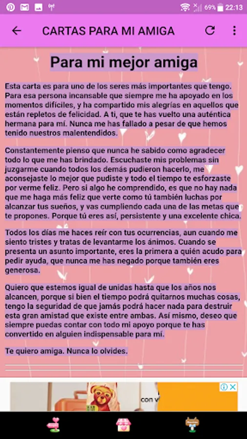 Letters: Many times we feel the need to let you know our friend how much they mean to us and how grateful we are to have their friendship, well here you can find various cards with different sentimental reasons to share with her.