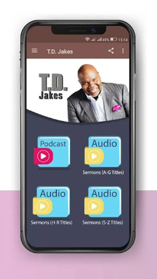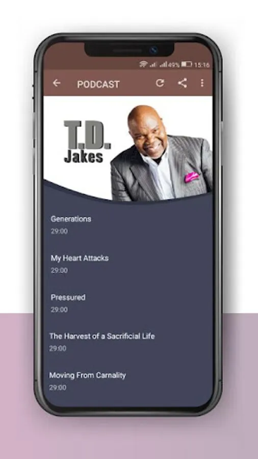 The Official app of Bishop T.D. Jakes and T.D. Jakes Ministries. Stay connected with audio, video, devotionals, podcasts, books and a variety of resources from Bishop T.D. Jakes. Watch live services from The Potter's House of Dallas, stay updated on The Potter's Touch Video Broadcasts, ManPower Conferences, Woman Thou Are Loosed Conferences, MegaFest Conferences and The International Pastors and Leadership Conferences.