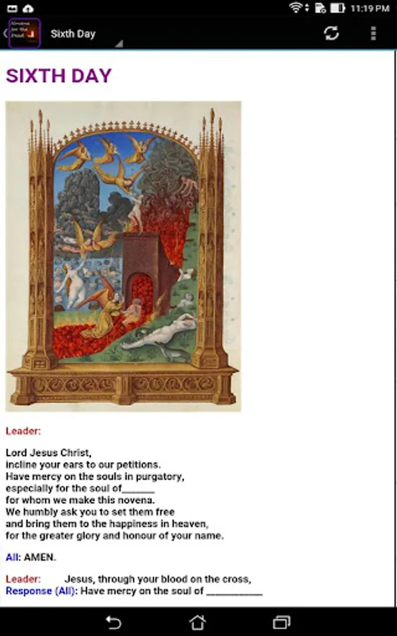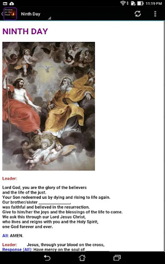 Free app that contains a nine-day novena for the dead. The app is organized by day so that you need only to click the day to know what prayer should be prayed for that day.