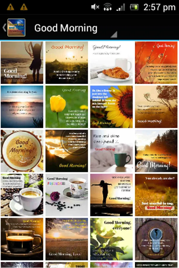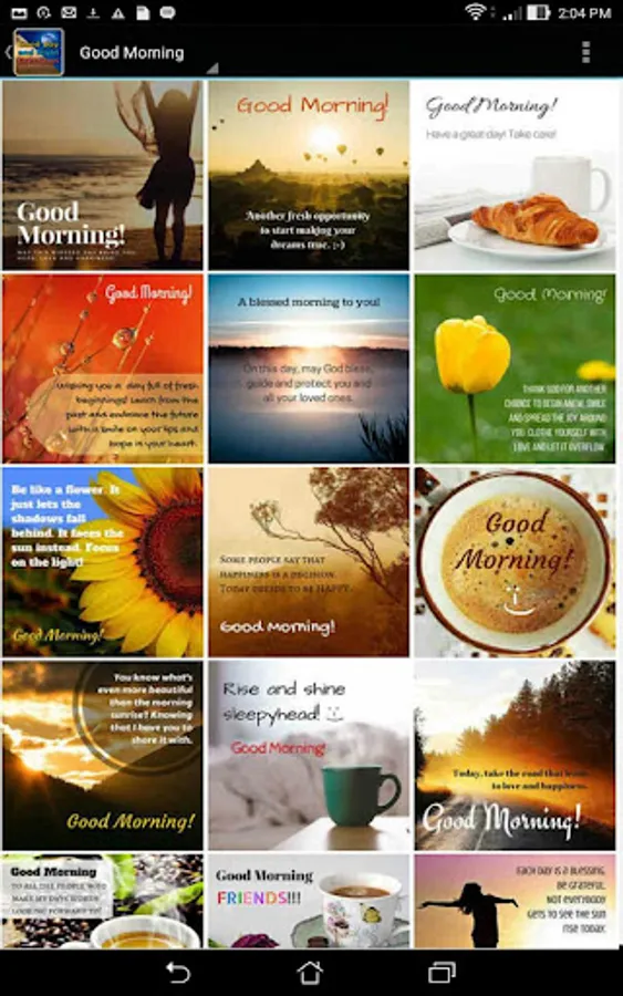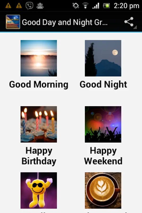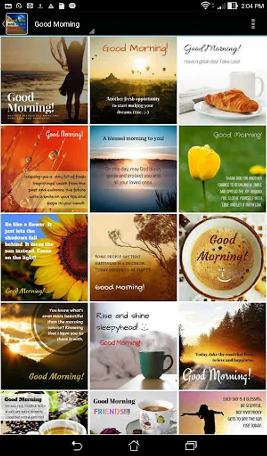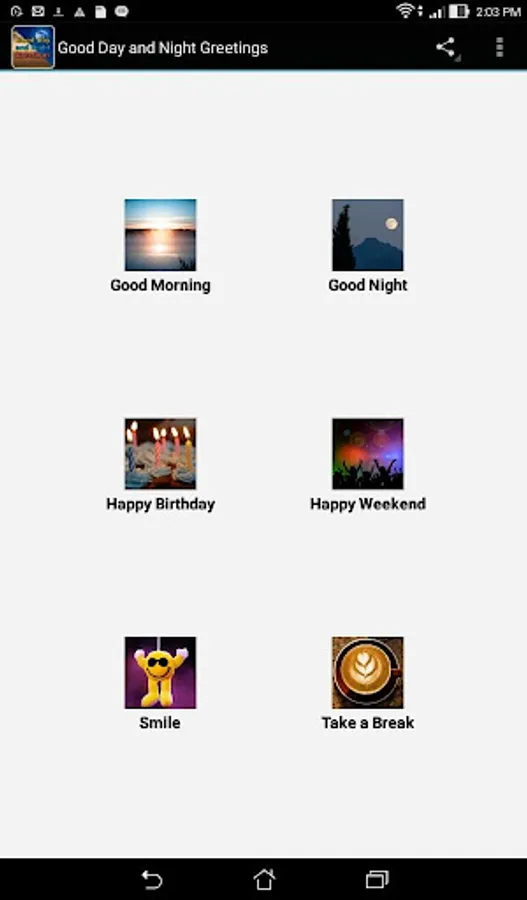 Free android app with shareable everyday image greetings including:
