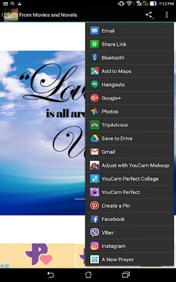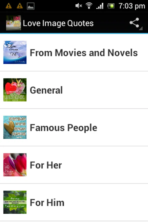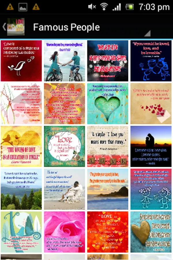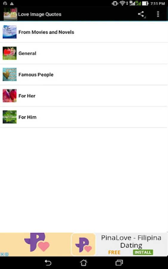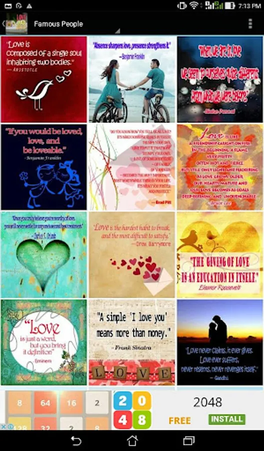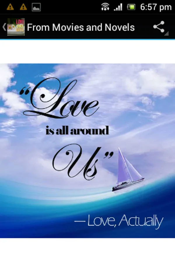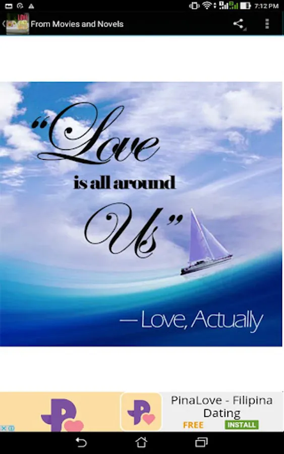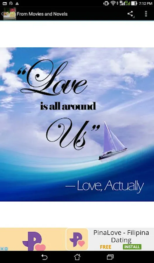 Free app containing inspiring love image quotes from movies, novels, famous people, quotes for him and for her, etc. to share on text messages, email and social networks such as Viber, Facebook, Instagram and more!