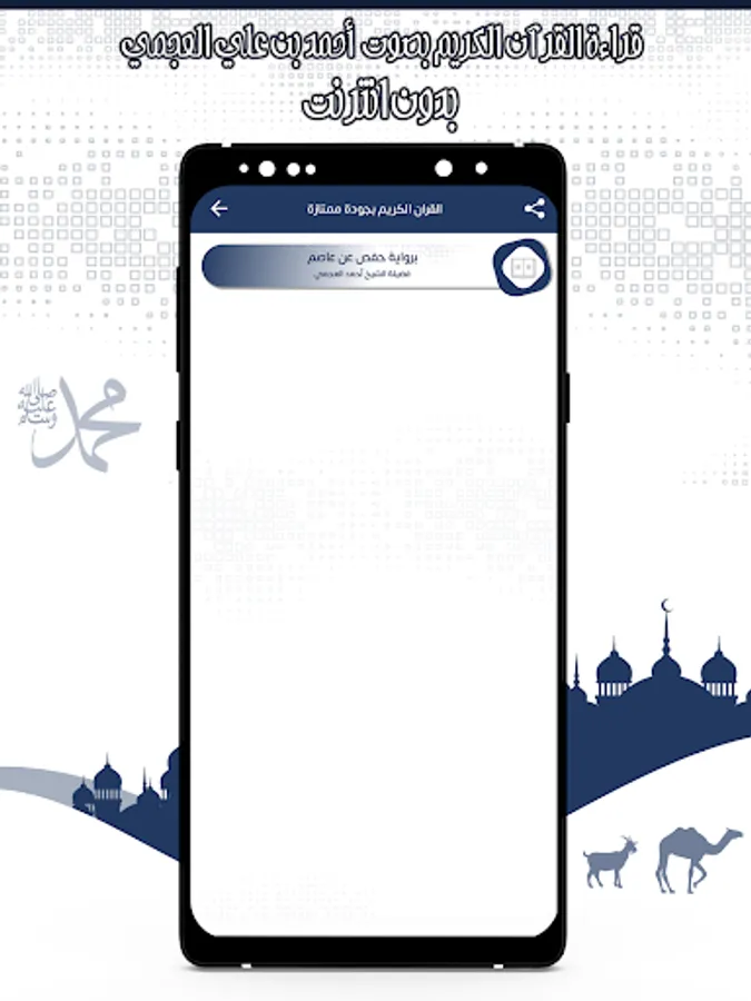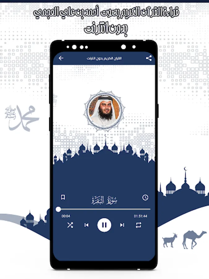 The application of the Noble Qur’an with the voice of Ahmed Al-Ajmi. You can hear all the surahs of the Noble Qur’an through your mobile phone or tablet with ease and ease through one program that contains all the surahs of the Noble Qur’an, and the Quran recitation application is characterized by the voice of Ahmed Al-Ajmi by being free and available on the store for Android phones. In order to enjoy reciting the Noble Qur’an with the voice of Sheikh Ahmed Al-Ajmi wherever you want.