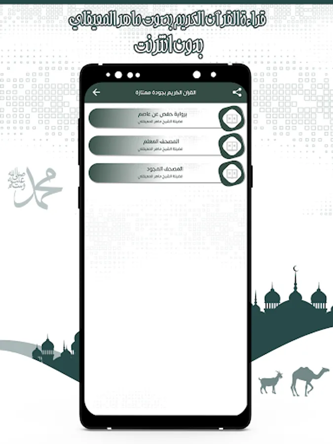 You can share the link of the program with your friends on various social media so that they can benefit from the Holy Qur’an program with the voice of Maher Al-Muqeeli and enjoy its features, the most important of which is that it is a simple free application that fits with all phones taking a simple space from the device.