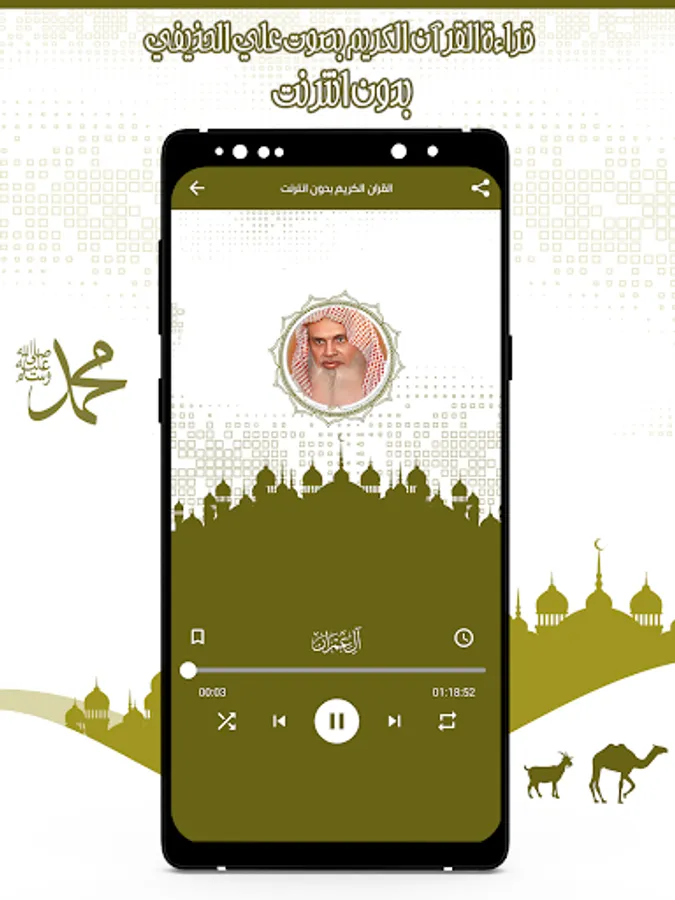 Now you can use the application with ease and listen to the surahs of the Noble Qur’an with the voice of Sheikh Ali Al-Hudhaifi and live a wonderful case of faith in which you delve into the meanings of the Noble Qur’an, enjoying the voice of Sheikh Ali Al-Hudhaifi, who transports you to another world with his distinctive voice.