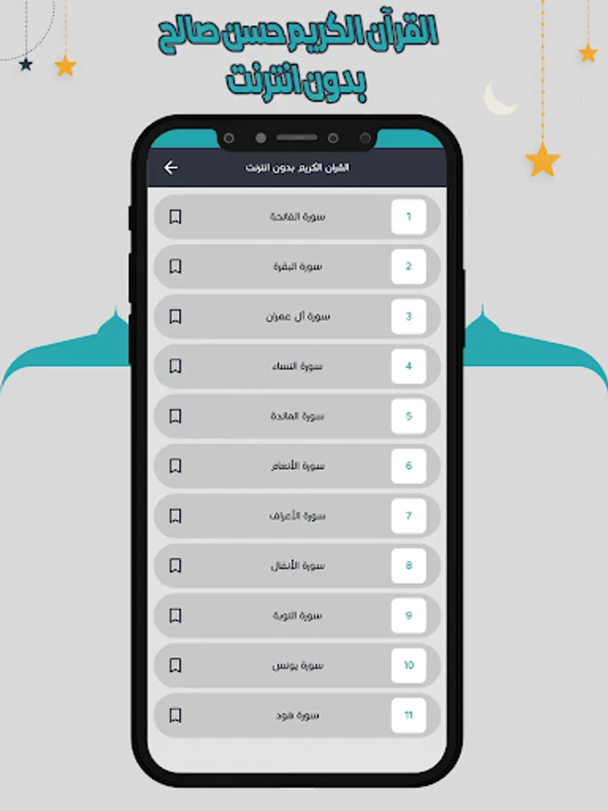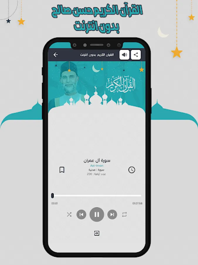 After downloading the application, you can listen to the surahs of the Noble Qur’an with the voice of Sheikh Hassan Saleh for free, anytime, anywhere, with ease.