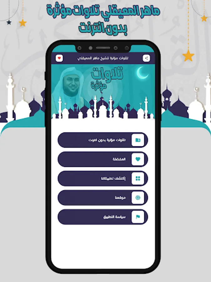 The application of influential recitations Maher Al-Moaikli without the net allows you to hear all influential recitations through your mobile phone or tablet device with ease and ease through one program that contains influential recitations of Maher Al-Moaikli, and the application of influential recitations of Maher Al-Moaikaly is free as it is available on the store for Android phones . The application of influential recitations of Maher Al-Moaikaly can be downloaded with ease, so that you can enjoy the recitation of the Noble Qur’an with the voice of Sheikh Maher Al-Moaikli wherever you want.