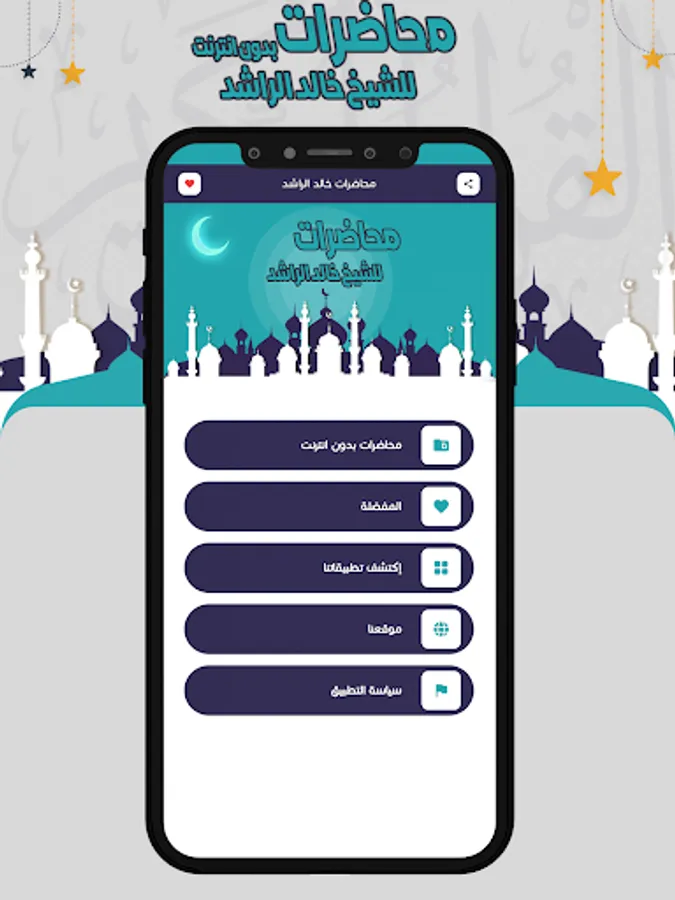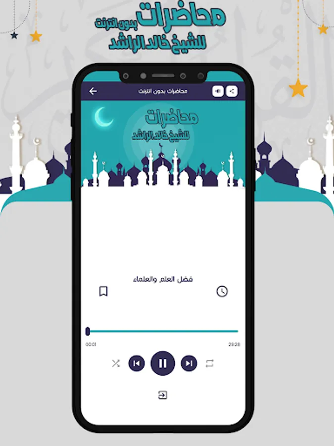You can share the program link with your friends on various social media, so that they can benefit from the Khaled Al-Rashed program, lectures without the net and enjoy its features, the most important of which is that it is a simple free application that fits with all phones, occupying a simple space on the device.