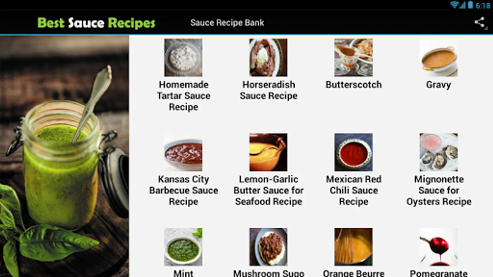 Sauce Recipes are secrets in many chef`s recipes but on this wonderful app, you can have a peek of secrets of many great chefs. You can see over 100 sauce recipes on this app to make them with your favorite dishes. There are many useful sauce recipes you can learn and use in everyday life. Although there are over 100 sauce recipes it will be more updates coming up on this fantastic app. This app contains a large variety of all kind of sauce recipes. Be sure to download it and rate it you will not regret it.