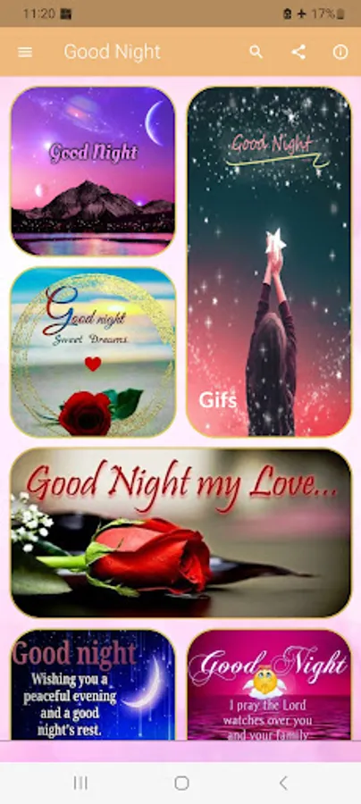 Good night gifs is a category that can be used to greet good night wishes and good night cards to your loved ones. You will be able to enjoy this beautiful category every day at night.