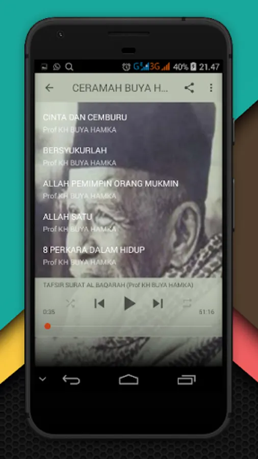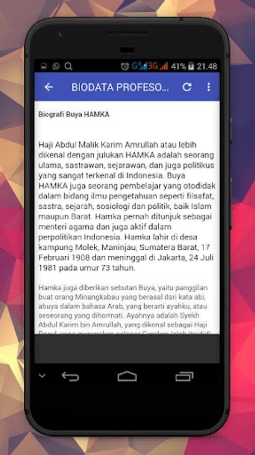 Haji Hamka or better known as Hamka was a scholar, linguist, historian, and also a very famous politician in Indonesia. Buya HAMKA also a self-taught learners in science such as philosophy, literature, history, sociology and politics, both Islam and the West. Hamka was appointed as a minister of religion and is also active in Indonesian politics. Hamka was born in the village of village Molek, Maninjau, West Sumatra, February 17th, 1908 and died in Jakarta on July 24, 1981 at the age of 73 years.