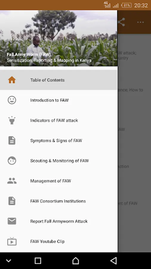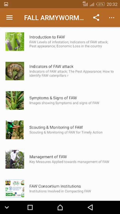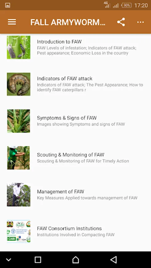 Fall armyworm (FAW) [Scientific name: Spodoptera frugiperda] is an insect pest with moth as the adult stage and larvae (caterpillars) as the destructive stage. In Kenya, the pest was first observed in March 2017 on off-season, irrigated maize crops. Maize is the pest’s most preferred host but can also attack crop plants such as sorghum, rice and wheat.