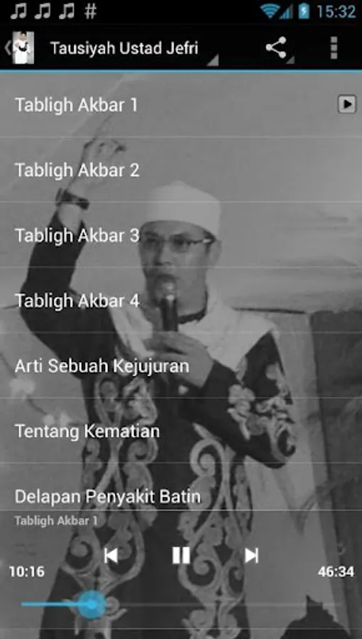 An audio lecture application of Ustadz Jefri Al Bukhory audio form so that easily keeps users can access the material Islamic easily, anytime, anywhere. Delivered with the typical style of a Ustadz Jefri flowing and attractive.