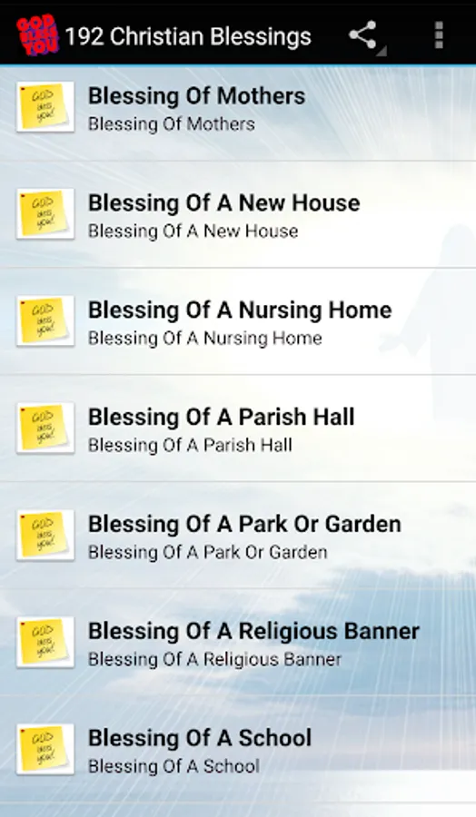 People are accustomed to seeing bishops, priests, and deacons blessing objects or persons in the name of the Church. However, there are other blessings that can be prayed by anyone who has been baptized, "in virtue of the universal priesthood, a dignity they possess because of their baptism and confirmation". The blessings given by laypersons are exercised because of their special office, such as parents on behalf of their children.