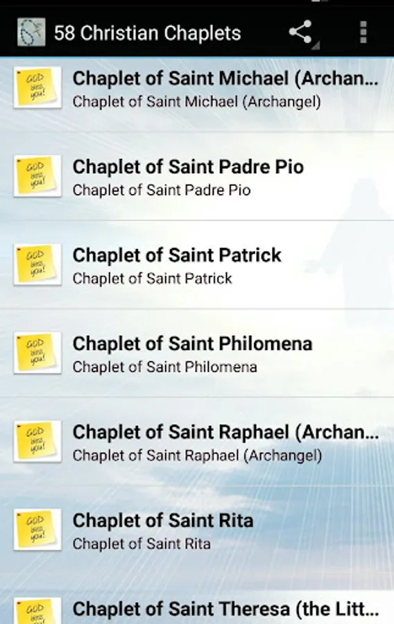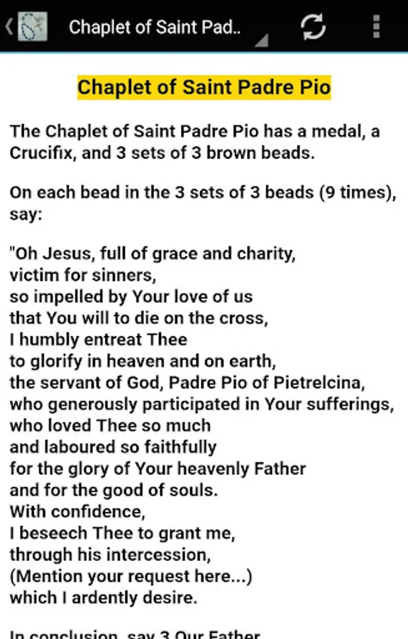 What is a Chaplet? Like the rosary, a chaplet is a sacramental. It consists of prayer beads, and on each bead one says certain designated prayers. There are many different types of chaplets. Often they honor Our Lord or the Blessed Mother under a particular title, such as the Chaplet of the Sacred Heart or the Seven Dolors Chaplet, and are special ways of practicing these Catholic devotions. Some chaplets honor and ask the intercession of particular Saints, such as the Chaplet of St. Anthony, St. Philomena, etc.. Chaplets are also known to be powerful aids in obtaining certain virtues, such as the Immaculate Conception Chaplet which is prayed to obtain and preserve purity, or the Chaplet of St. Patrick which is a special prayer for an increase in Faith.