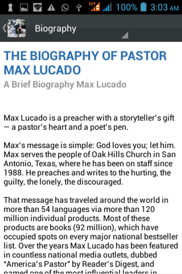 Max Lucado (born January 11, 1955) is a best-selling Christian author and writer and preacher at Oak Hills Church (formerly the Oak Hills Church of Christ) in San Antonio, Texas