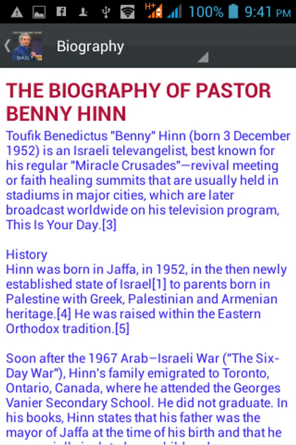 Toufik Benedictus "Benny" Hinn is an Israeli televangelist, best known for his regular "Miracle Crusades"—revival meeting or faith healing summits that are usually held in stadiums in major cities, ...