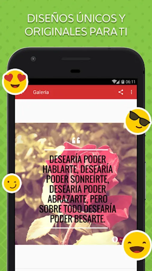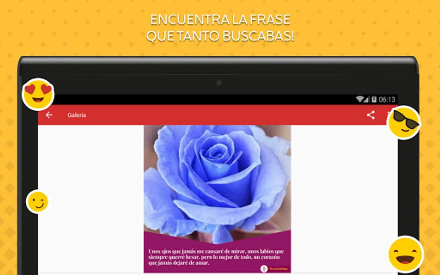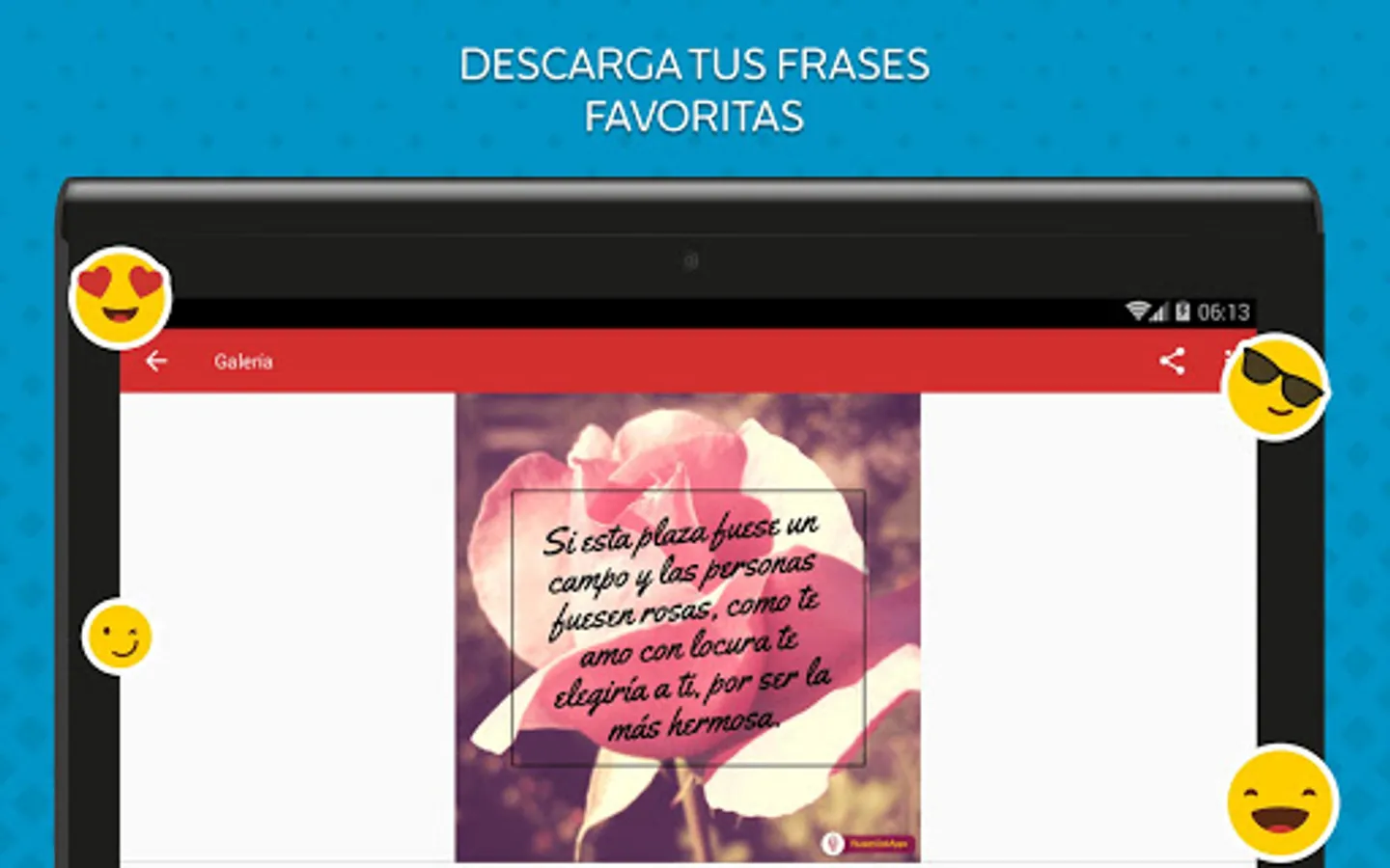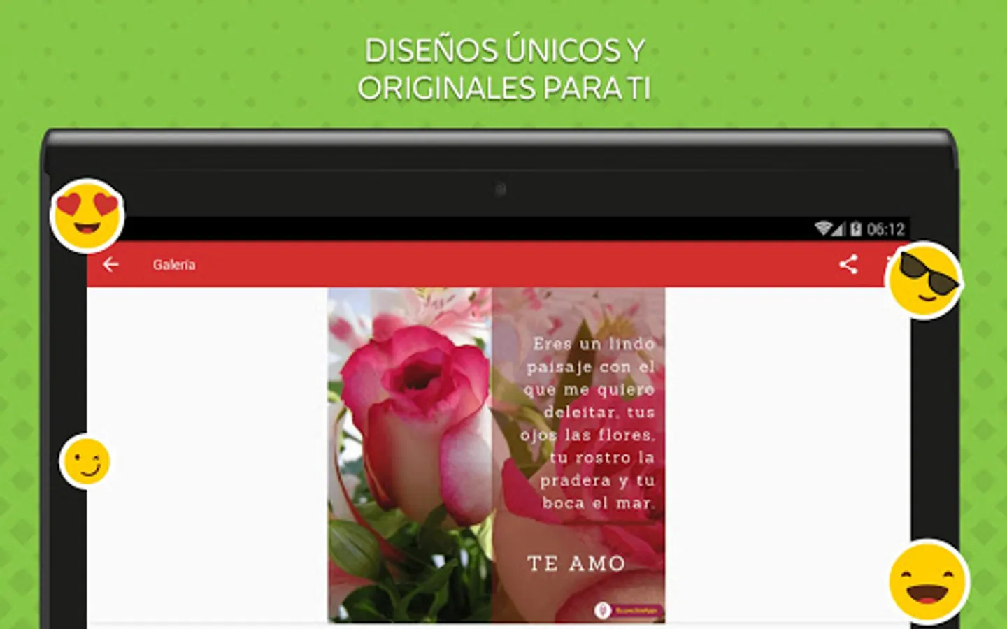 Show your style, personality, feelings and romantic spirit with the best roses with words of love. They are ideal for updating your profile walls or devices. Our app is lightweight so they do not take up much space and you can download it without problems.