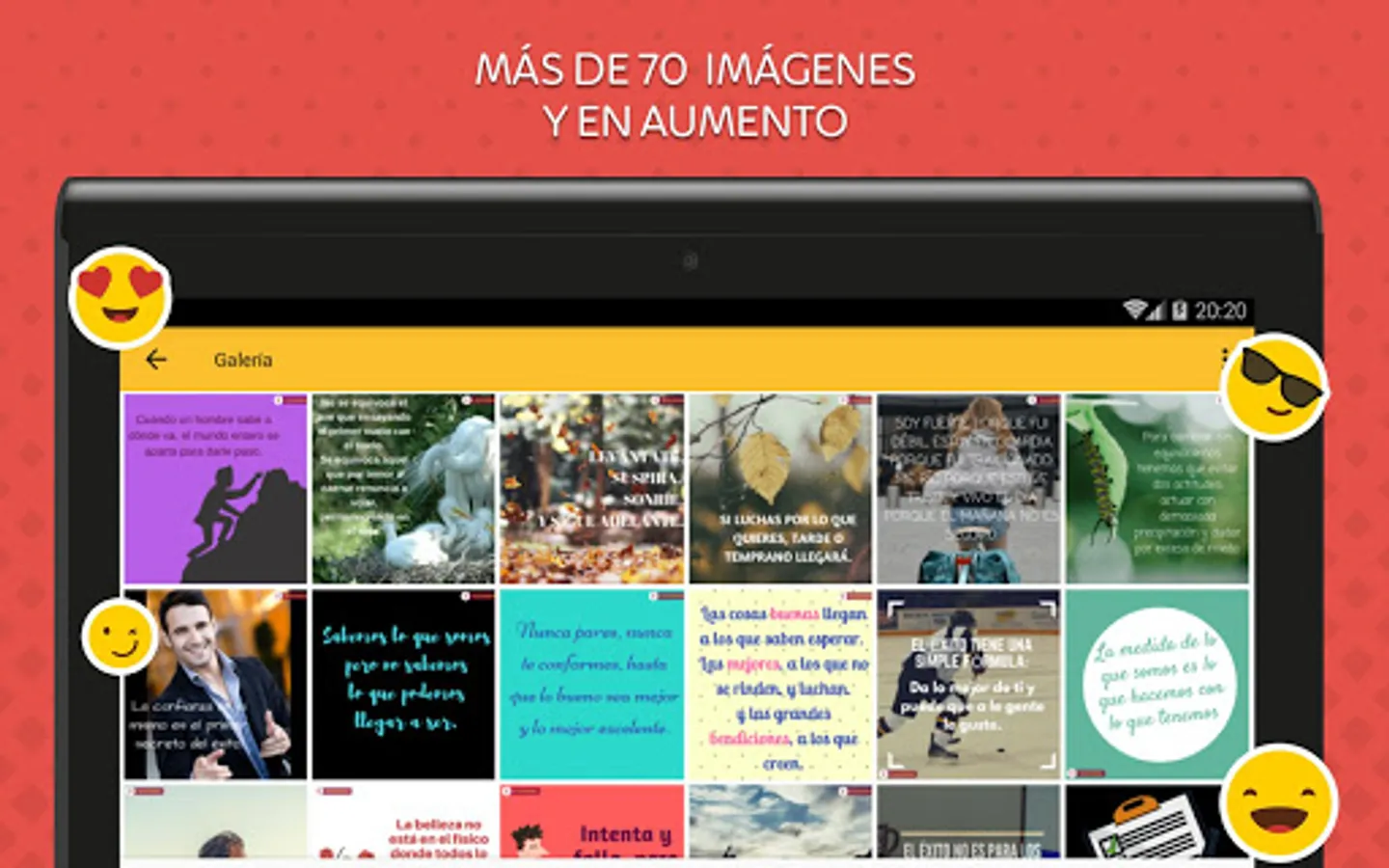 With our app, you can enjoy a wide variety of images and phrases, with which you can give that word of encouragement to those who need it so much. We guarantee that you will feel fully identified, since each of the phrases and Motivation Overcoming we offer have been created thinking of you, so you will find that it fits perfectly to you and your situation.