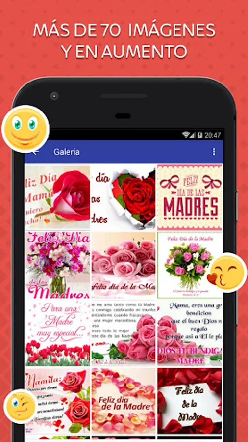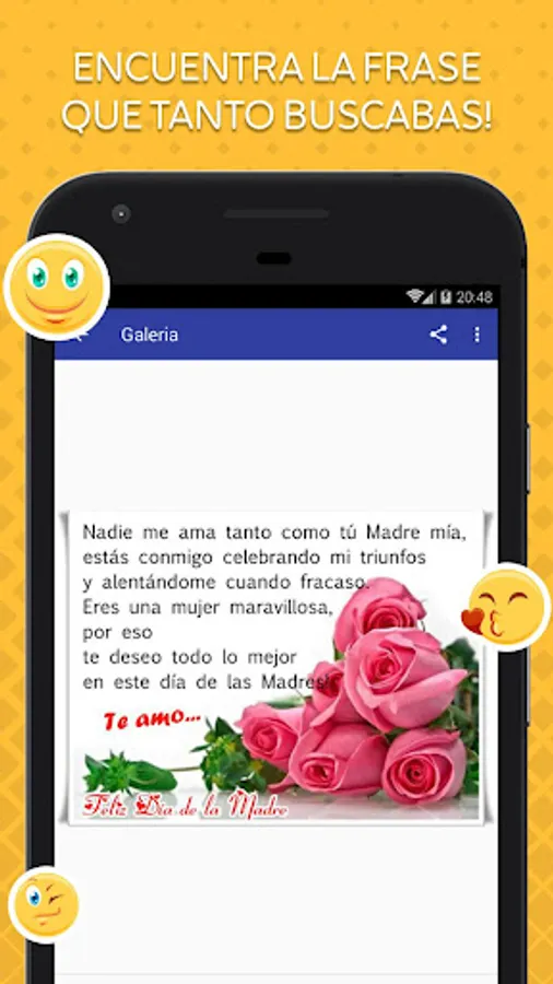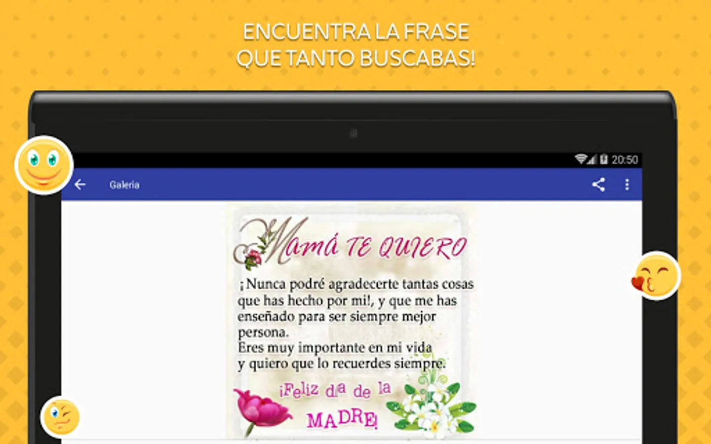 These phrases for Mom with images also will serve as backgrounds ideal screen to share on social networks, this app will find beautiful pictures for Mother's Day, you can also use these phrases as states of love and gratitude to Mother.