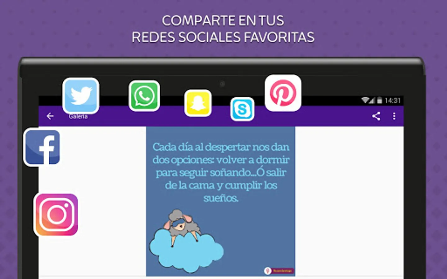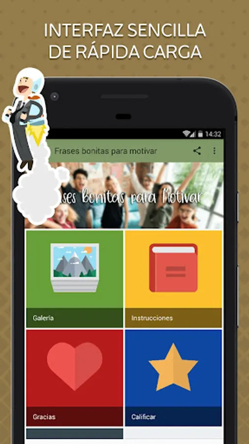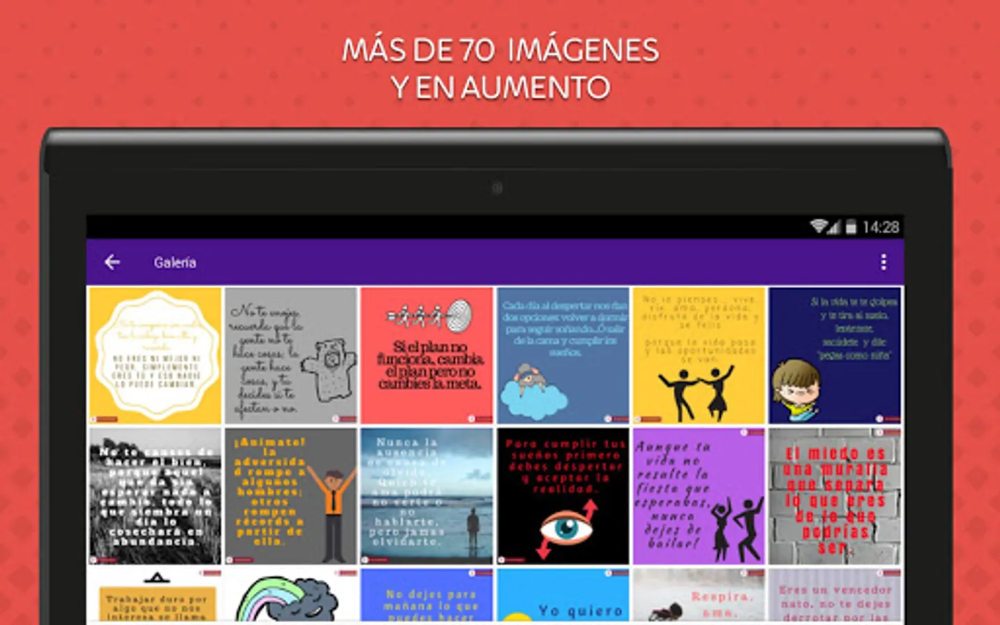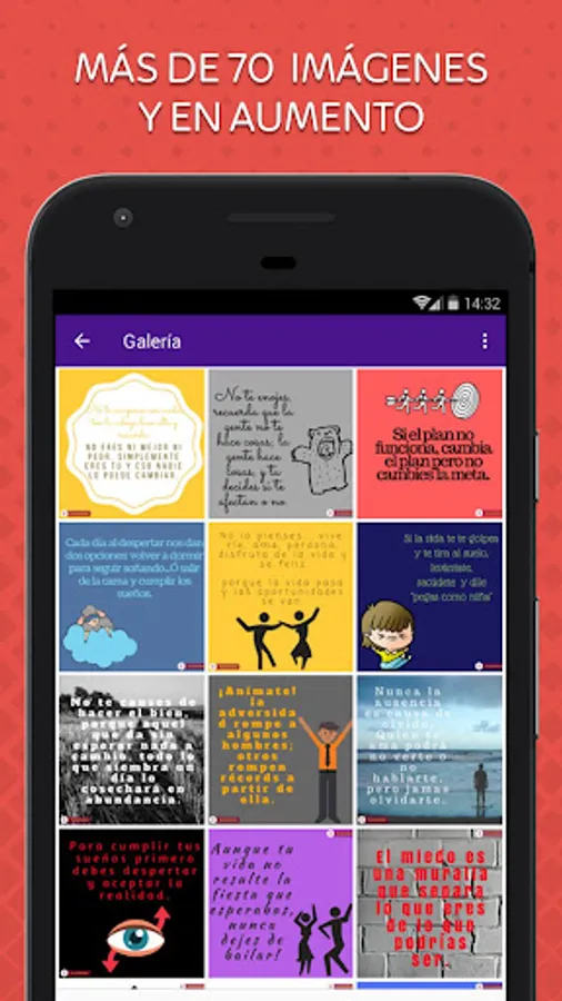 Our app brings you a gallery, where you can enjoy the best motivational pretty phrases. We guarantee that you will feel fully identified and at ease because they have been created specially thought of you, therefore you will always find an image that suits you and each of the situations that arise in your life or the person who want to support.