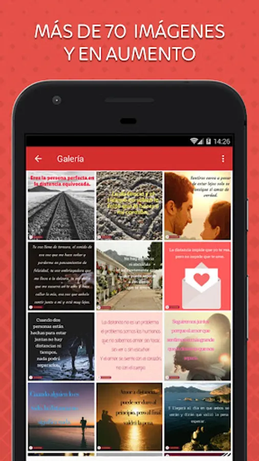 Download the best app phrases distance love, and grant unique and unforgettable details to your great love. Upgrade your devices, walls, histories and social networks whenever you want and show your passion at all. Do not let the distance end to your relationship and fight for your love. Install it Now!