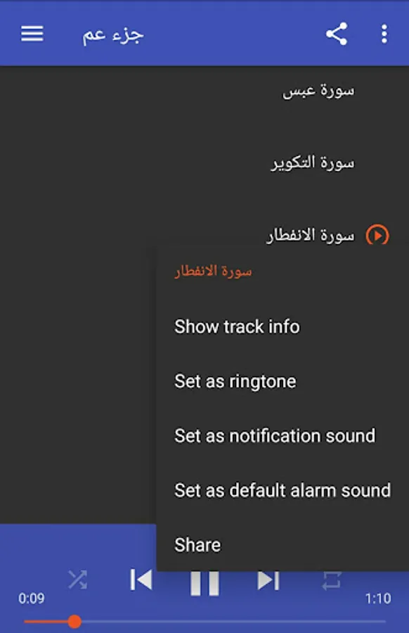 "A light and simple program that allows you to listen to a full audio part without the need to connect to the internet with the voice of the reader Sheikh Saud Al Shuraim. All the walls are of high quality and small size.