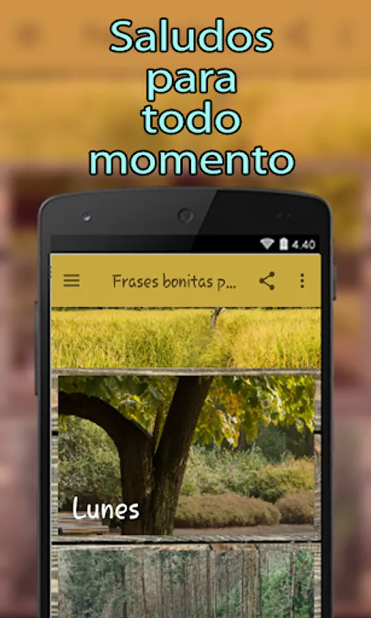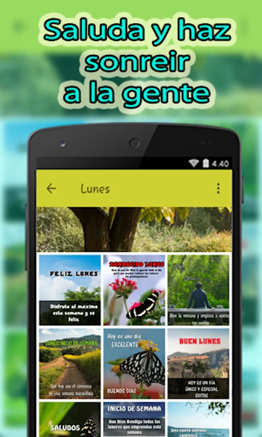 Our App "daily greetings" consists of a beautiful gallery of very colorful photographic images, they are carefully selected backgrounds for you, to achieve the desired effect ... greet that special person or wish a nice day in your work, studies, work, weekends and make him / her feel like an important person in our life is the purpose of this "daily greetings" application.