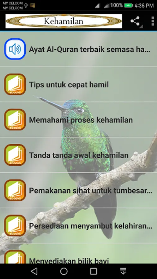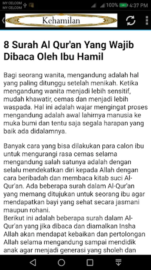 Thanks for subscribing to my app, I hope we all receive the blessings of life and happiness selalu.App tells about the process of pregnancy, nutrition, care and troubleshooting tips will be easy to ibu.Juga included reading the Quran best heard and read while waiting for the moment bayi.Ayat birth of this paragraph shall often be heard may benefit from this app,