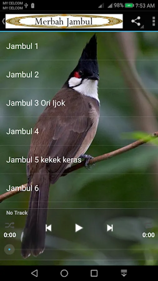 Apps for all fans bulbul crested, crested sound choice I have collected and placed in Apps ini.Semoga us all happy with our hobby and become a therapy in time.