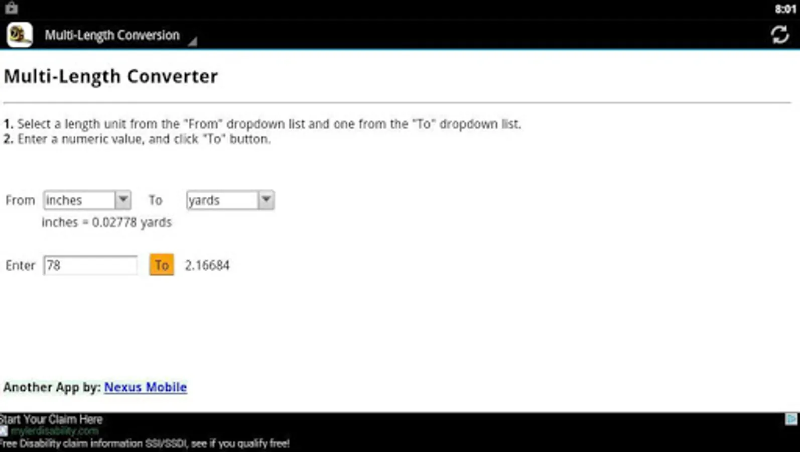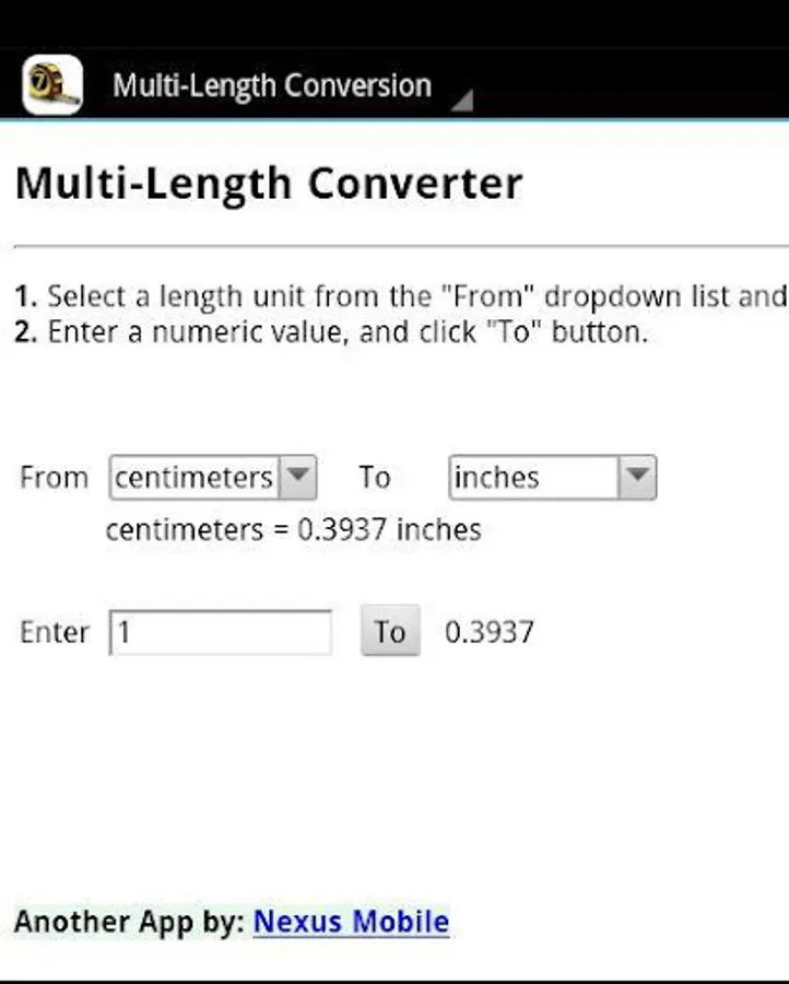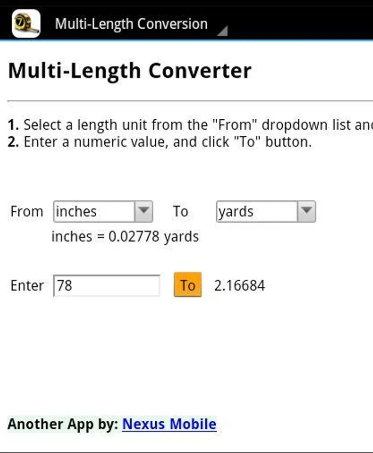 A handy app which will easily and quickly convert a length you specify to any of 7 different measurements.