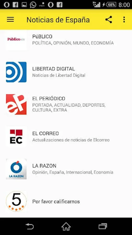 Noticias de España gives you easy access to read the most popular news from various sources of news media online & newspapers, ranging from national news, general, sports, finance to the latest entertainment news.
