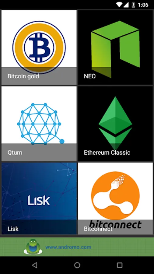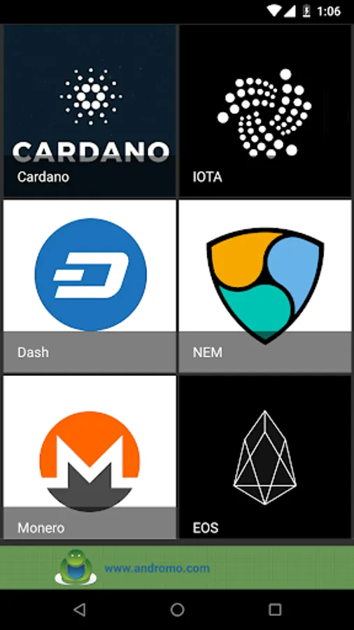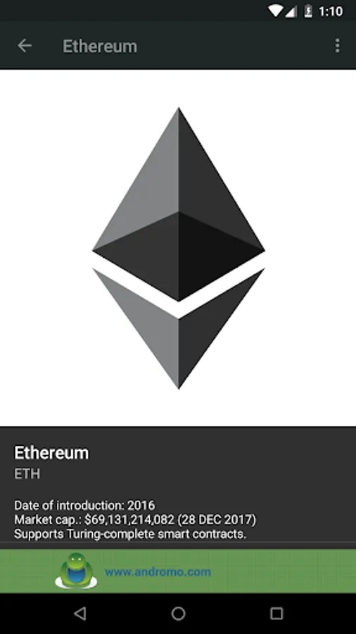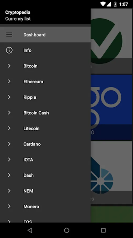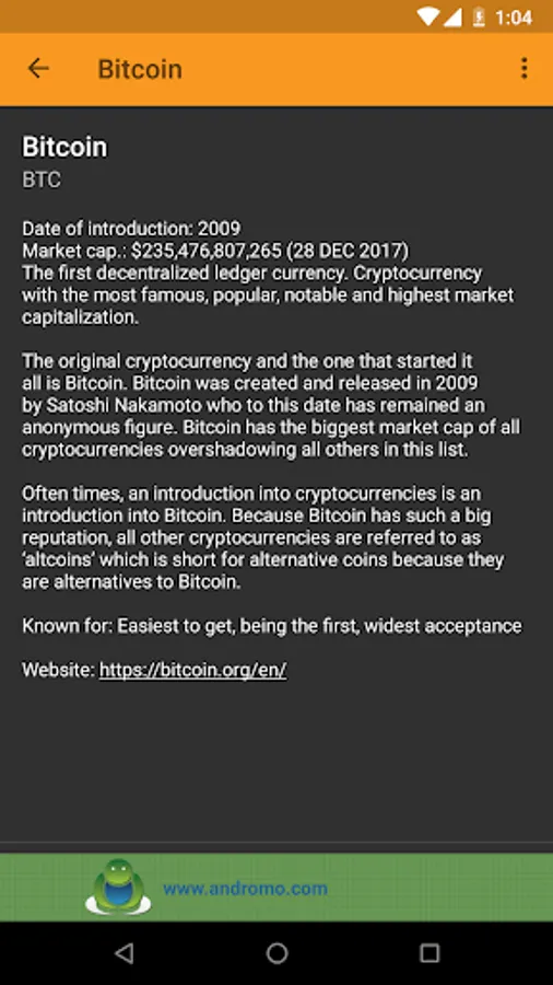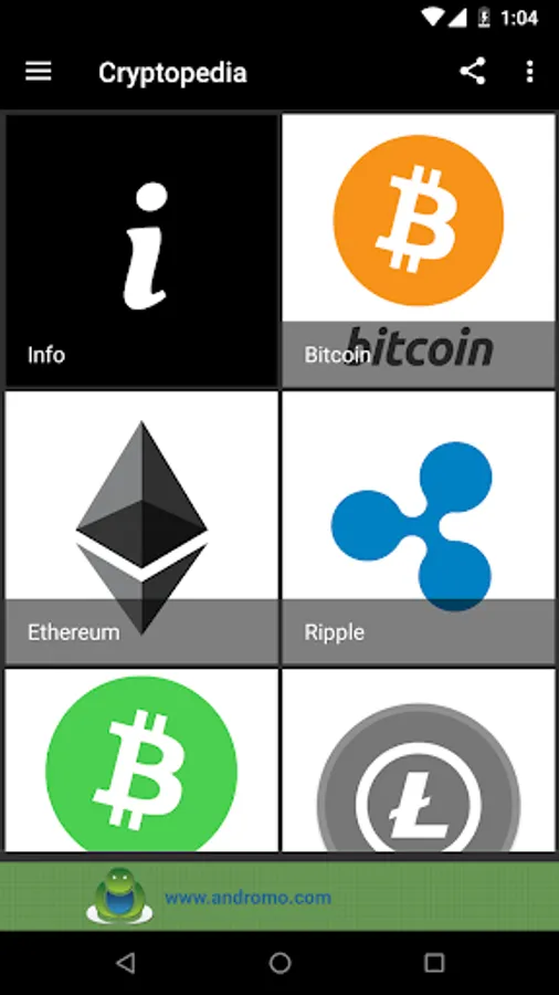 This app includes a clear and easy to understand overview & description of the different cryptocurrencies. Once you've opened the app and the dashboard appears, simply press on an icon to read about the currency you've selected. Every description contains the following information about the selected cryptocurrency: